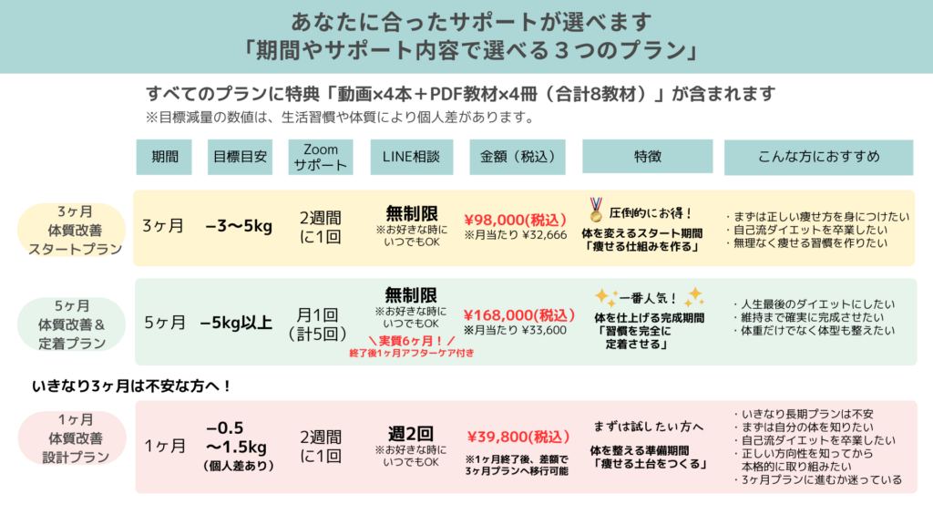 でもこの方法を教えてもらってから、「食べちゃダメ」じゃなくて「何を食べたらいい?」って考えられるようになりました。食べるのが好きだから、何を食べようか考えるのが楽しくて、今までのようにストレスがない!結果、7ヶ月で10kg落ちました!!ダイエットっていうか、健康的な習慣になった感じです。だからこのまま続けたらもっと痩せれる気がします。